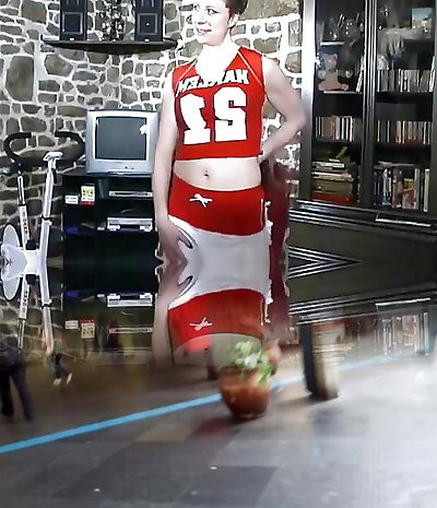 Ample boobed sporty blonde cheerleader gets her ass smashed with cumshot on stomac