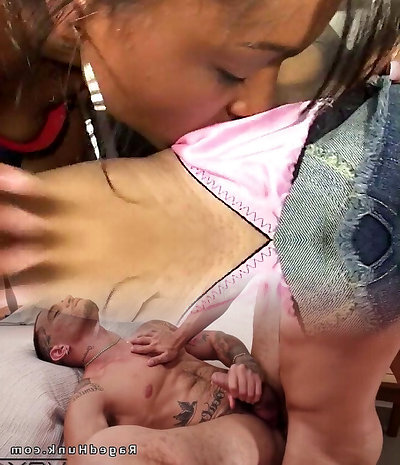 Ebony dude is eating dark-hued's juicy muff before she blows him