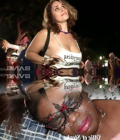 Whorey pierced doll stoves a bottle up pussy at fantasy fest