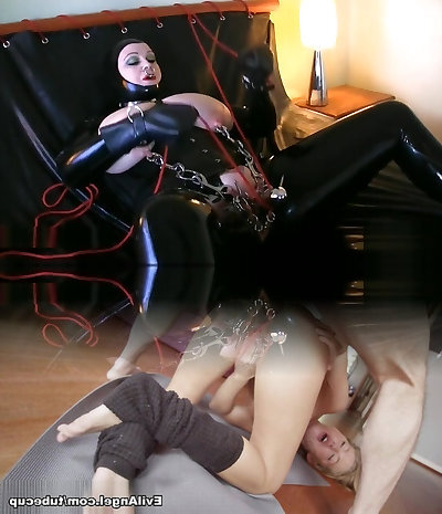 Latex babe finger penetrates stranger with big pierced dick