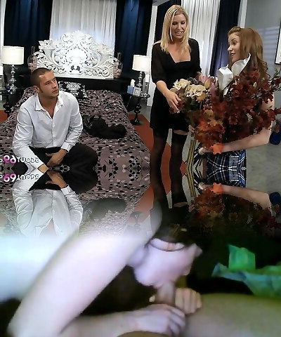 Two nasty schoolgirls enjoy stepbrother's dick until caught