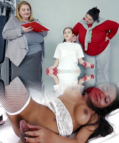Two BBWs Make a Petite Submissive Teen Lick Their Hefty Twats And Butts In the Gym