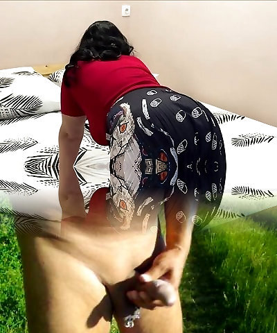 Risky jerk off while witnessing big rump hijab stepmom in the kitchen.