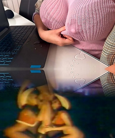 Red-hot Step Mother Seduces Step Stepson in the office, shows him milky nipples and Makes big cock Hand Job