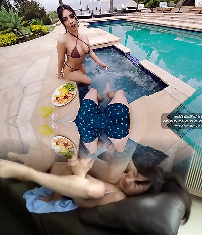 We shouldn't do this! Afternoon at the pool ended in a lezzie threesome with my step-sis and her best mate! Angie Ortiz
