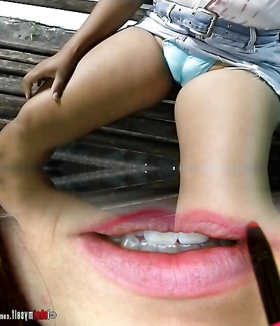 My Pussy is playing Peak-a-boo under my little Miniskirt - Smash machine eating my Fat Cunt