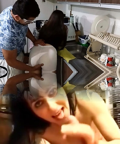 Hindo Latina Stepsister Pummels with her Cousin in the Kitchen Cum in Mouth and Munches Cum