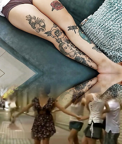 Tattooe babe pierced nipples sexy tight shaved cameltoe puss