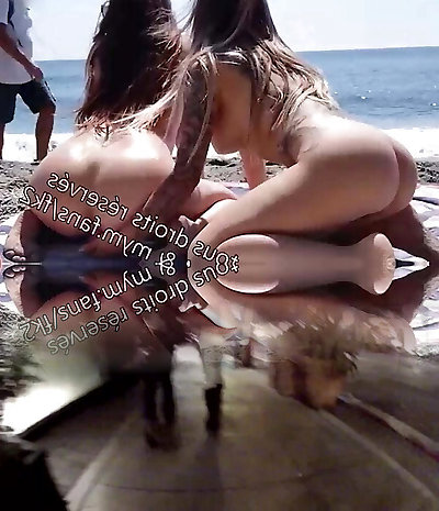 Two horny sluts sucking manhood on the beach under the sound of the sea breeze