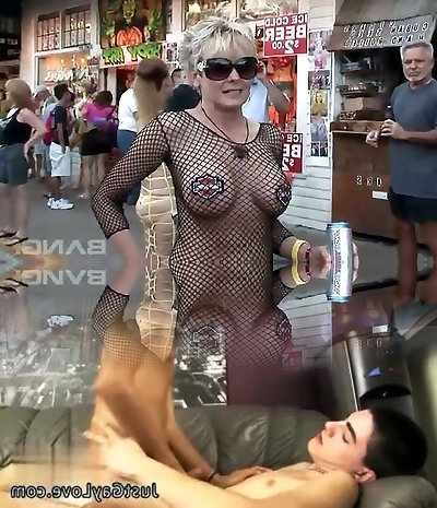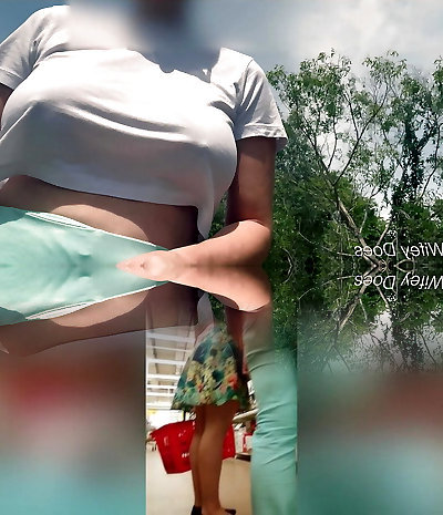 Cougar amateur lady in public flashing and gargling