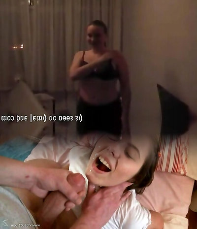 He cannot control himself and cums on her satin nightie but cum hungry horny big tits female does not stop and after cummi