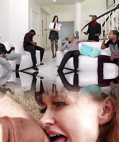 Naughty babe Hazel Moore having fun with more black dicks at once