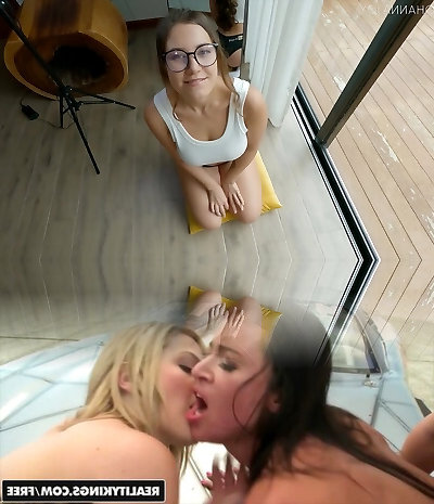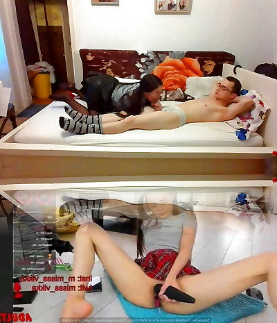 Two nasty schoolgirls enjoy stepbrother's dick until caught