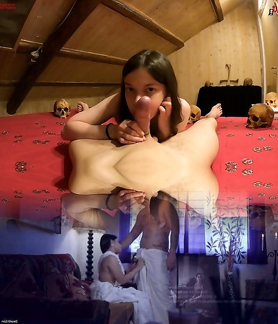 Mel plays with my cock between skulls