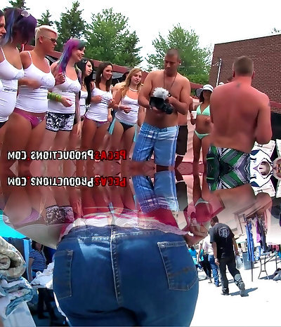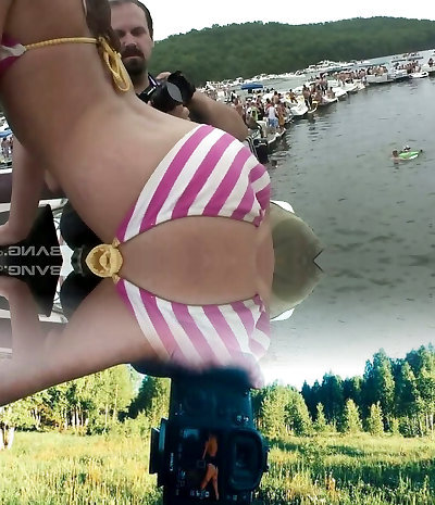Party hard bathing suit whore is ready to flash her tits and nice shaved pussy