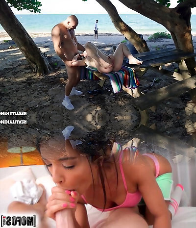 Chesty Ebony Babe in Interracial Hardcore Action Outdoors