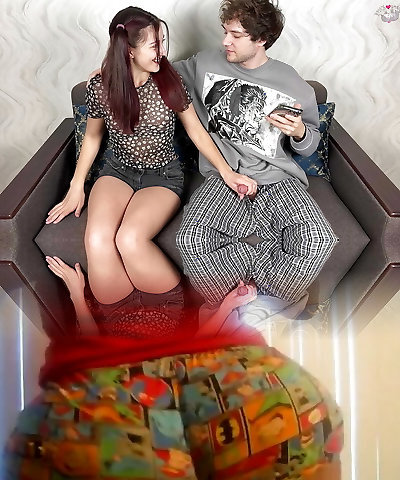 Step Brother Drops Dick Out Of Pants And Step Sister Sneaks Unnoticed To Wank Him Off! I'm Spunking