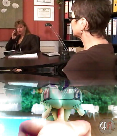 Saucy redhead assistant begs for a huge facial