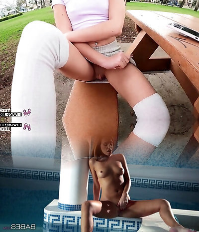 College-aged years old girl fucks herself with fake penis in mini skirt