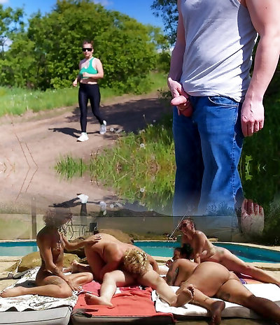 European voyeurs taunting naked stranger