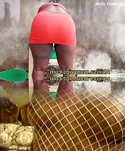 African Honey Washing Clothes Outside In A Mini Microskirt No Panty/akiilisa With Ray Wells