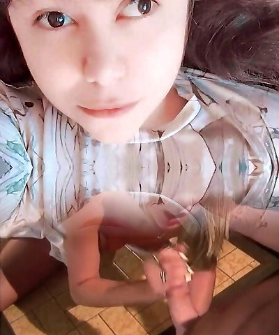 Horny brunette with plump backside gives guy a blowjob