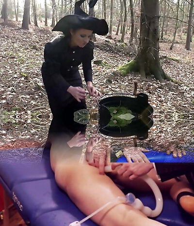 Every time she pulls on the balls, he squirts hot cum. TrippleH Hard Hessian testicle rubdown.