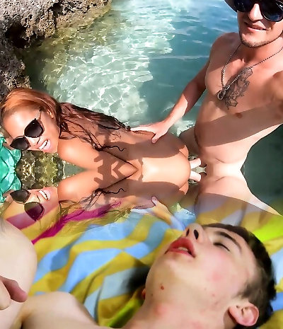 We shouldn't do this! Afternoon at the pool ended in a lezzie threesome with my step-sis and her best mate! Angie Ortiz