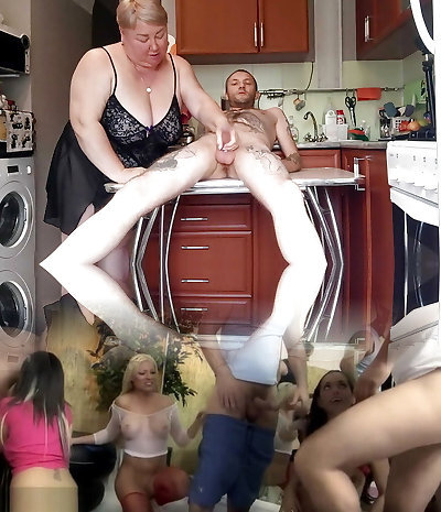 I'm sitting on the kitchen table and my mom-in-law drains my dick