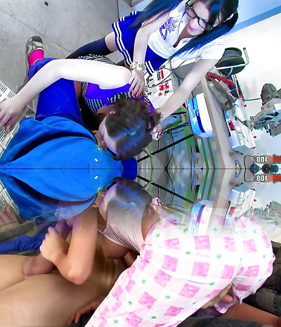 Ass Fucking threesome in the workshop with two very vicious college girls with squirting pussies