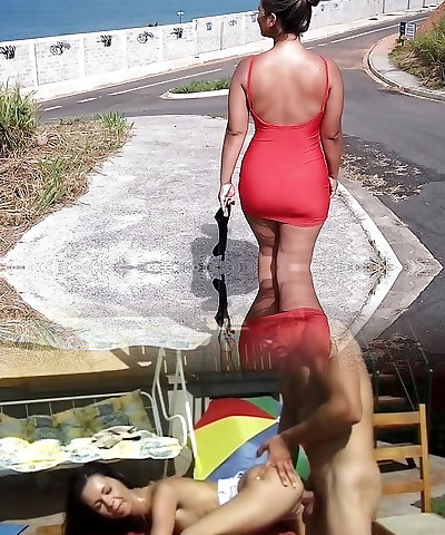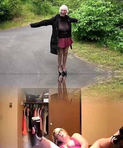 Flashing on the road with fat tits