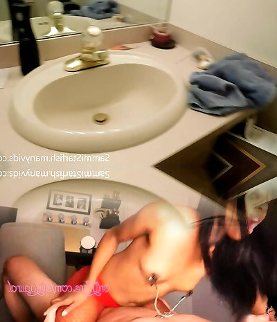 My big-breasted Girlfriend cleans the bathroom and flashes her baps