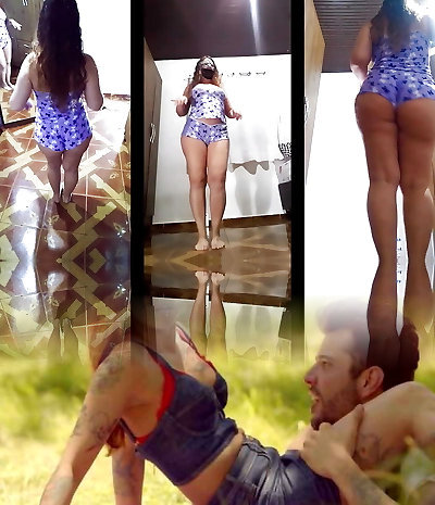 Cleaning the house in a micro thong bathing suit