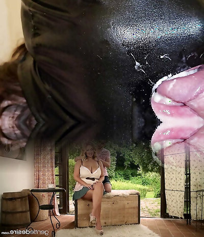 Classy blonde cougar tastes young black guy's enormous salami in interracial vid