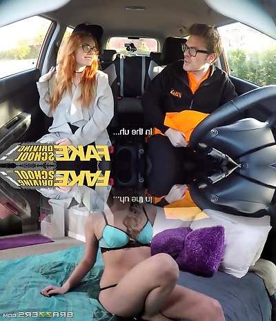 Fake Driving College Creampie in nerdy ginger teen hairy muff