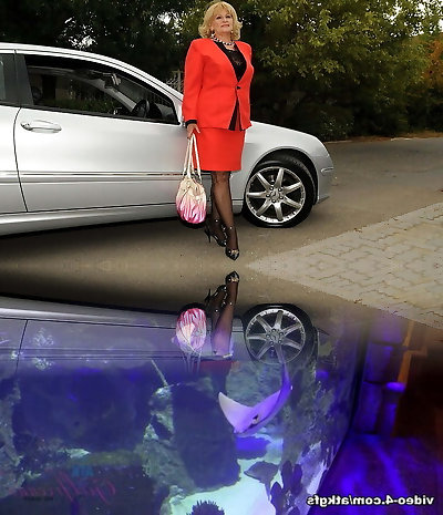 Engaged Mature Plumper in mini skirt rips her pantyhose and spreads
