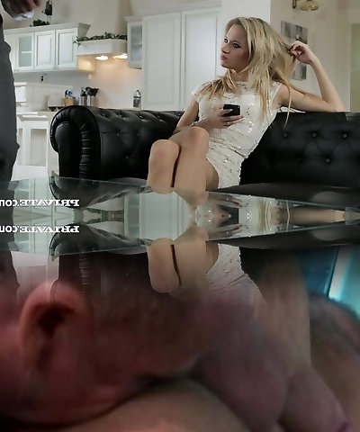 Huge tits sexy blonde secretary with specs strokes in nylons heels