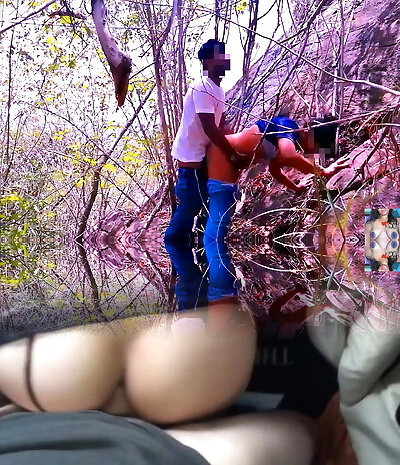 A threesome in the woods with a black biotch