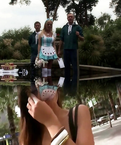 Longpussy, out for a walk, Xxl Beaver Plug, Sheer Top, High Heels, Thigh Highs and a Short Micro-skirt in Public!