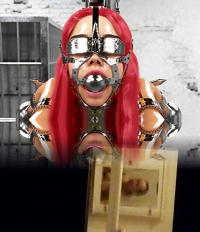 Slave in Hardcore Metal Restrain Bondage Restrained and Gagged