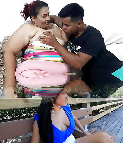 Big humungous curvy black-haired woman eager for cock enjoys and moans